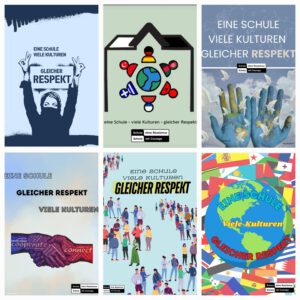 Im Rahmen eines echten Kundenauftrags durch Frau Kappeller erhielt die GVM 12 unter der Leitung von Frau Bauers die Aufgabe, einen Slogan und ein Plakat zum diesjährigen Thema zu gestalten. Es sollte darum gehen, dass junge Menschen, die aus verschiedenen Ländern mit anderer Kultur, Religion oder Werten und Traditionen sich in Deutschland möglicherweise in einem Wertekonflikt befinden. Das kann dann zu Spannungen und Diskriminierung führen. Trotzdem wollen wir hier in einer friedlichen und respektvollen Atmosphäre Lernen und Lehren. Diese Situation in starke Worte und einem aussagekräftigen Bild auf den Punkt zu bringen, war eine große Herausforderung, der die GVM 12 aber erfolgreich begegnet ist.